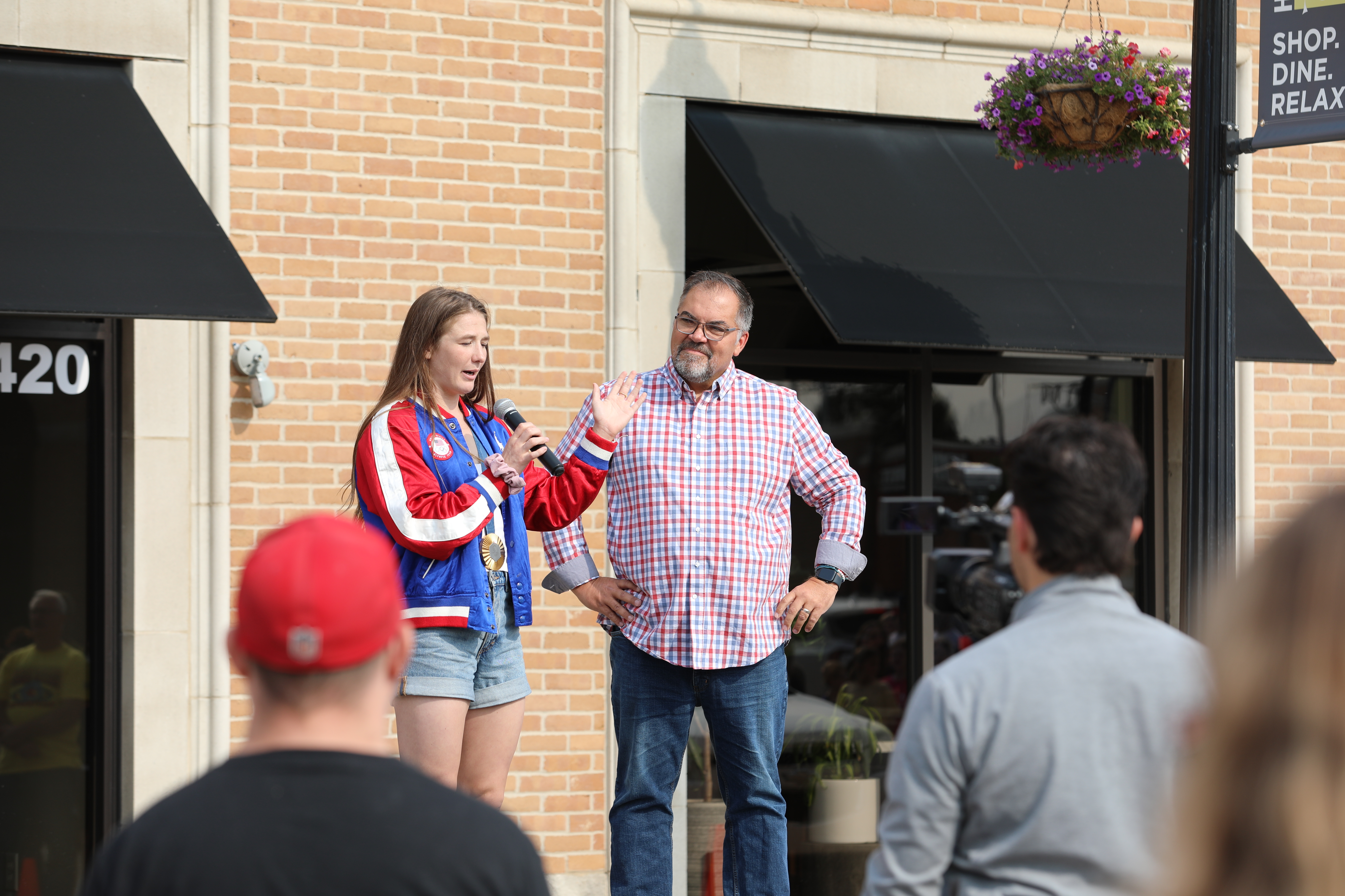 After the parade was over, hundreds gathered at Urban Swirl in Granger for an Olympic Celebration emceed by Mark McGill. A representative from Mishawaka Mayor Dave Wood’s office read a proclamation declaring September 8th as Sarah Hildebrandt Day! U.S. Congressman Rudy Yakym read the historical entry on Sarah’s Olympic achievement that he will be submitting to the official U.S. Congressional Record.