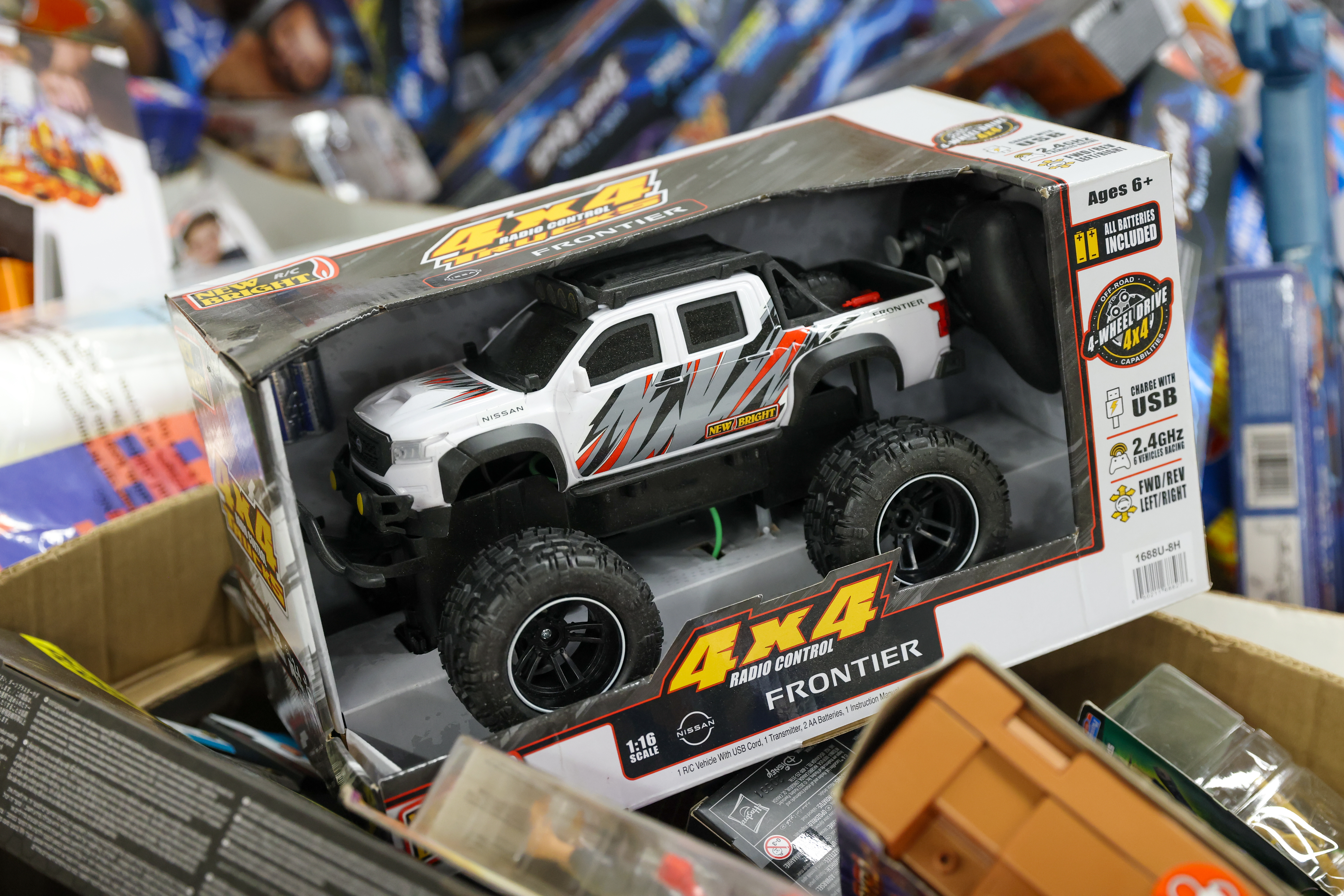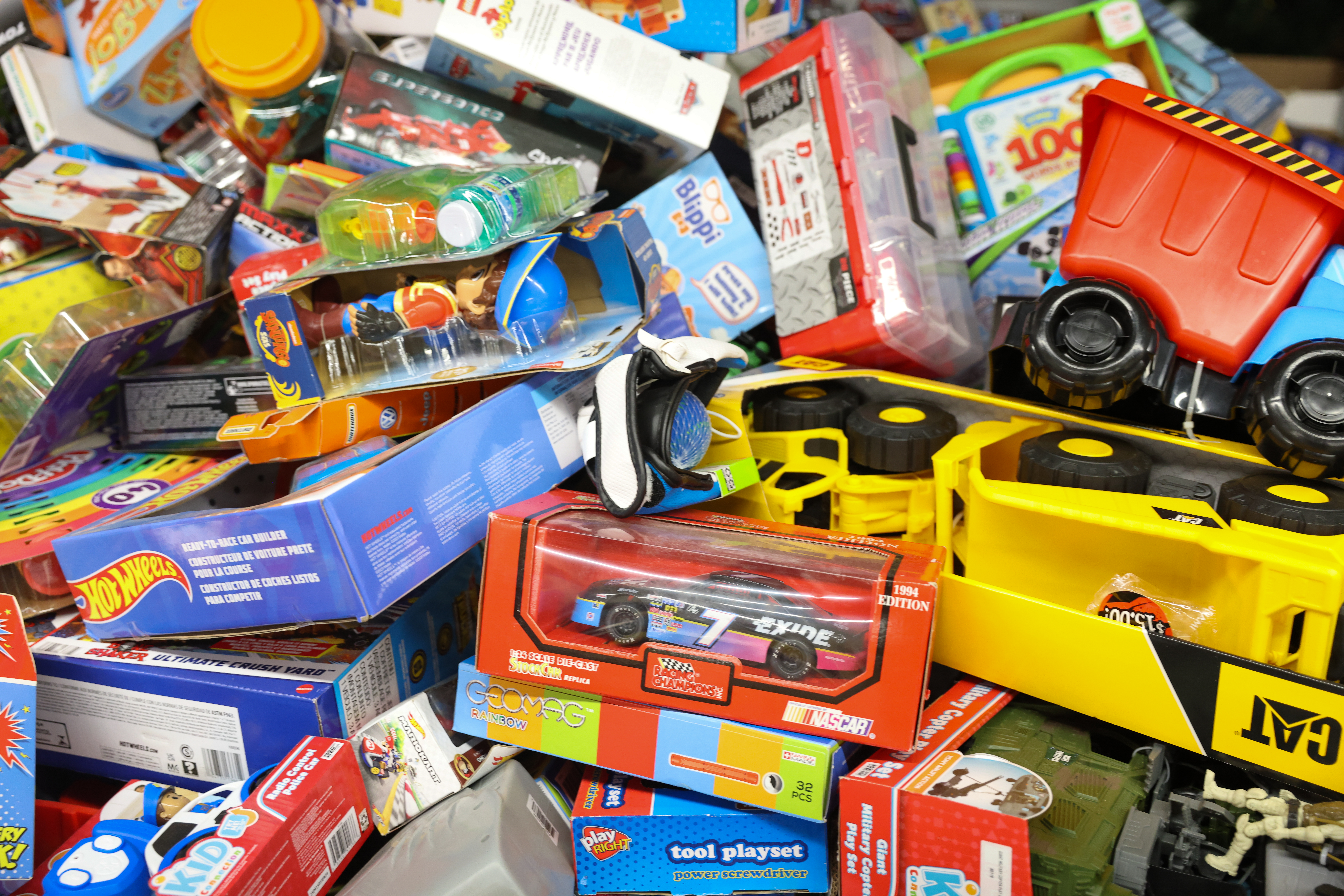 The warehouse was organized by age range, gender and category, with everything from dolls to books to cars to clothes, electronics, STEM kits and more.